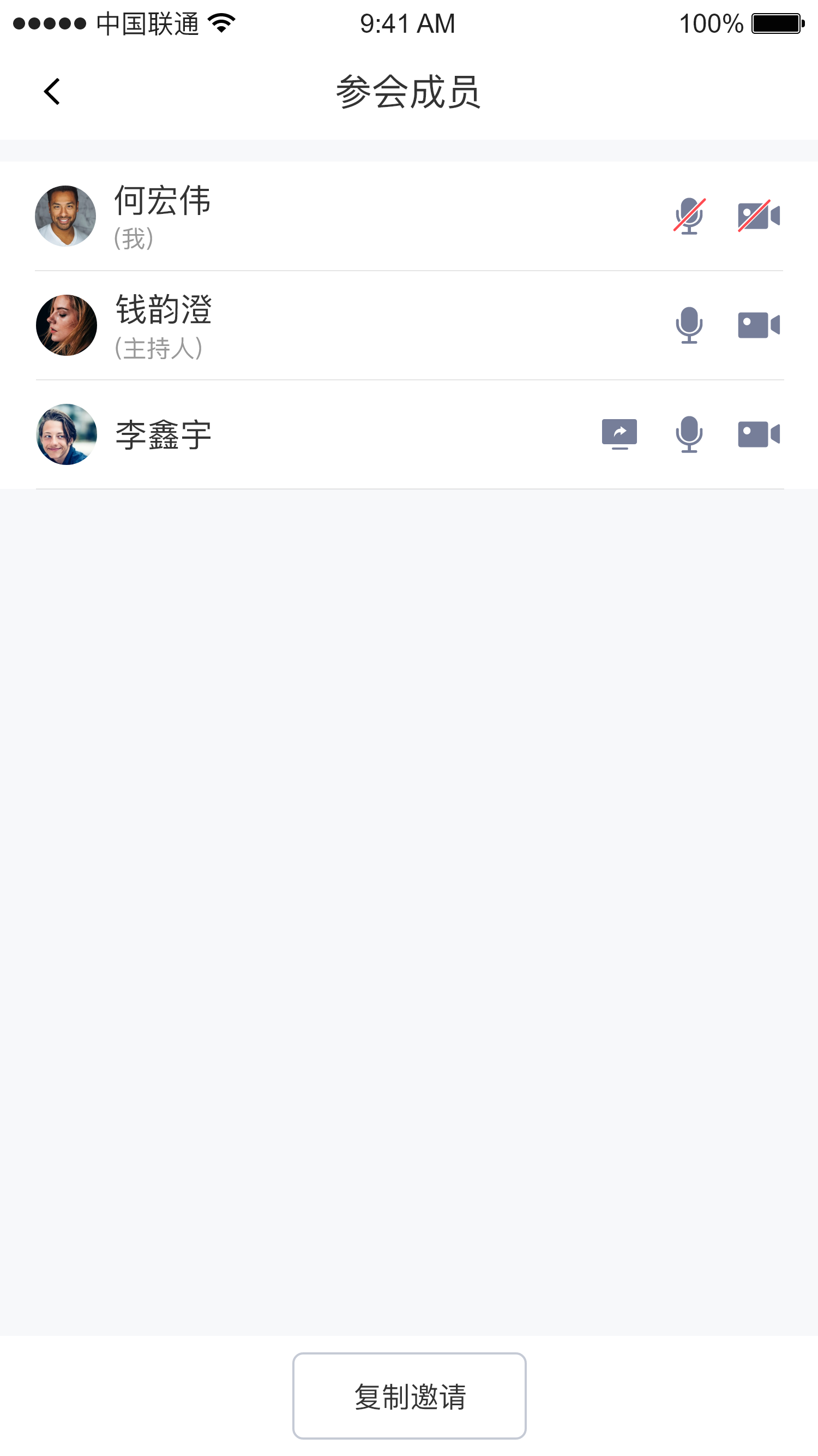 | 已邀请与会人页面 | 邀请与会人页面 |